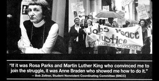 Lynn Burnett will be offering a lecture, followed by a facilitated discussion, about the radical white southerner Anne Braden and her involvement in the civil rights movement. We’ll hone in on the moments in Anne’s life that allowed her to shift her consciousness away from supporting segregation, and towards ultimately becoming a trusted ally and friend of movement leaders including Rosa Parks, Martin Luther King Jr., and Ella Baker. We’ll also bring our attention to organizing and movement strategies, and reflect on what we personally find most meaningful from Anne’s story.